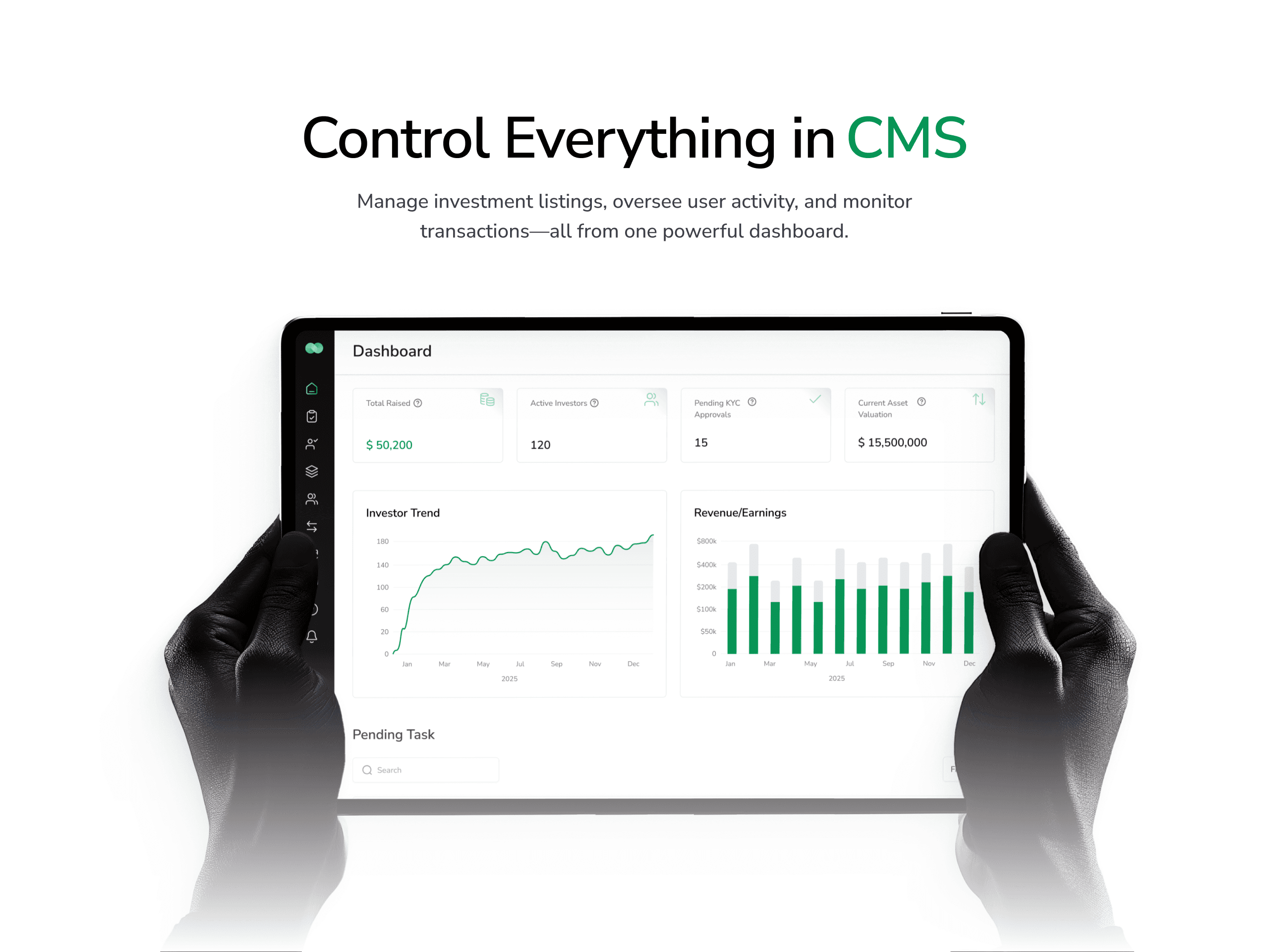 Track investor activity, verify accounts, and maintain a secure investment environment with streamlined workflows.